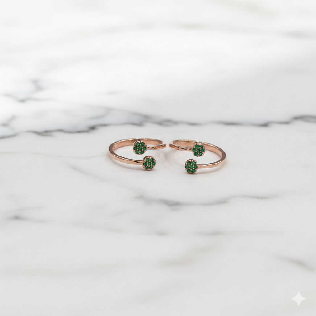 92.5 Silver Rose Gold Carat Round Cut Green Stone Toe Ring