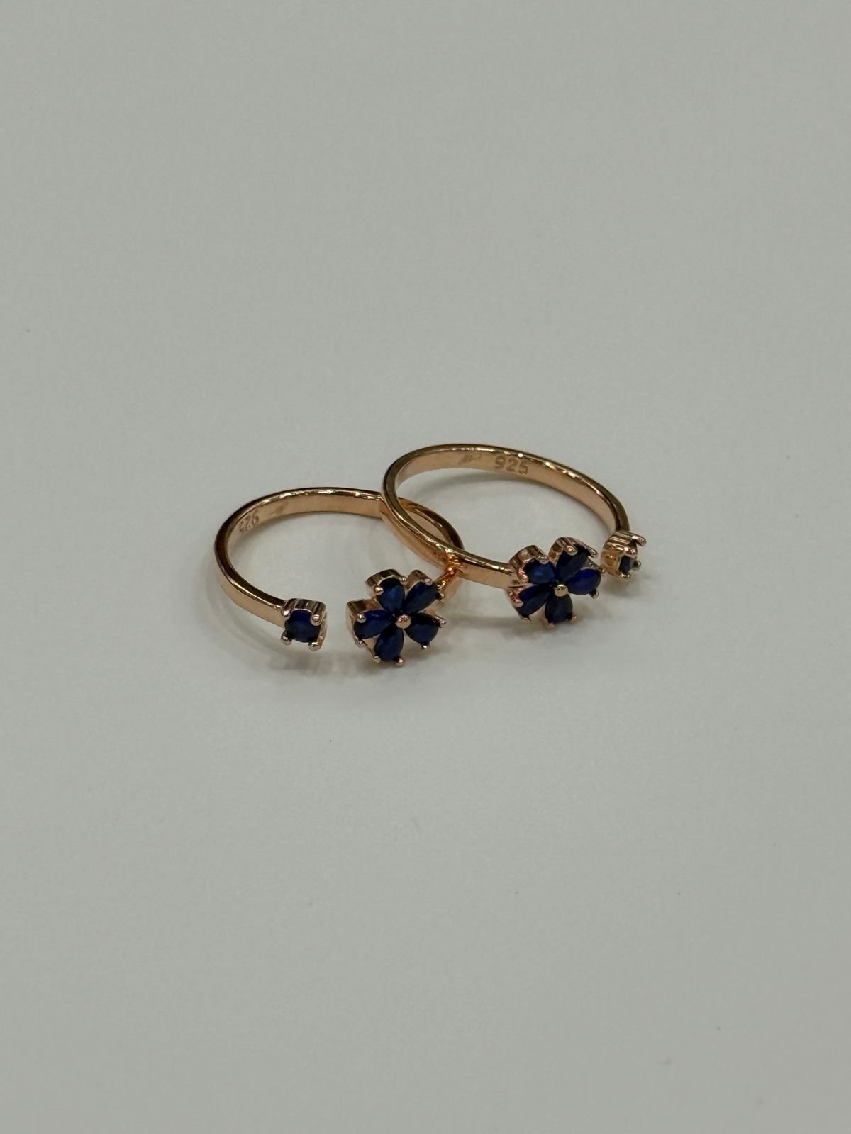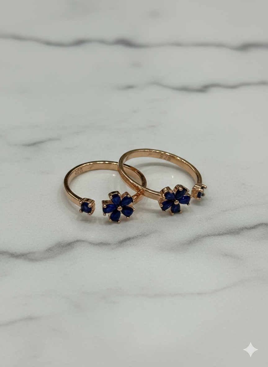 92.5 Silver Rose Gold Blue Stone Floral Toe Ring