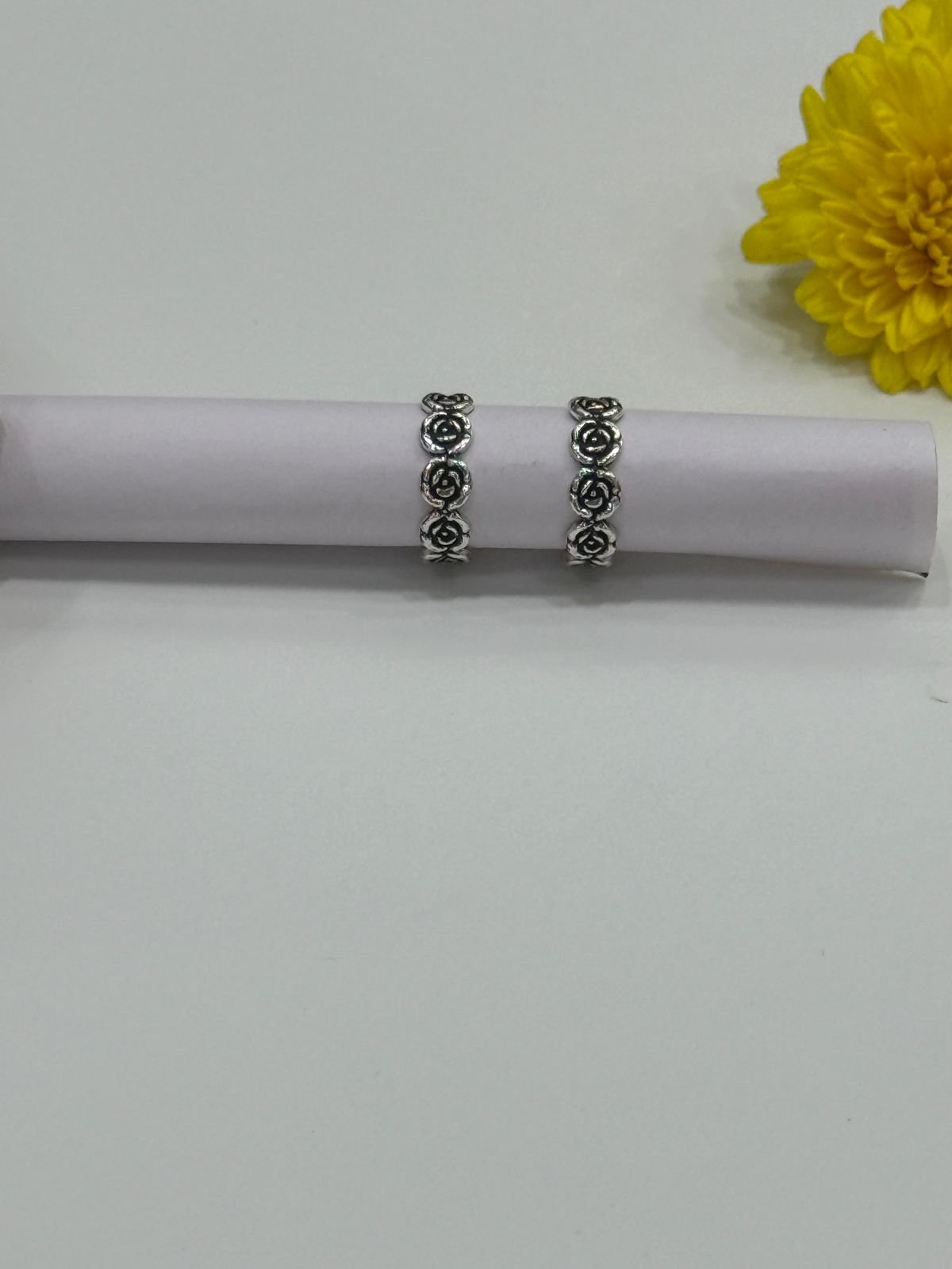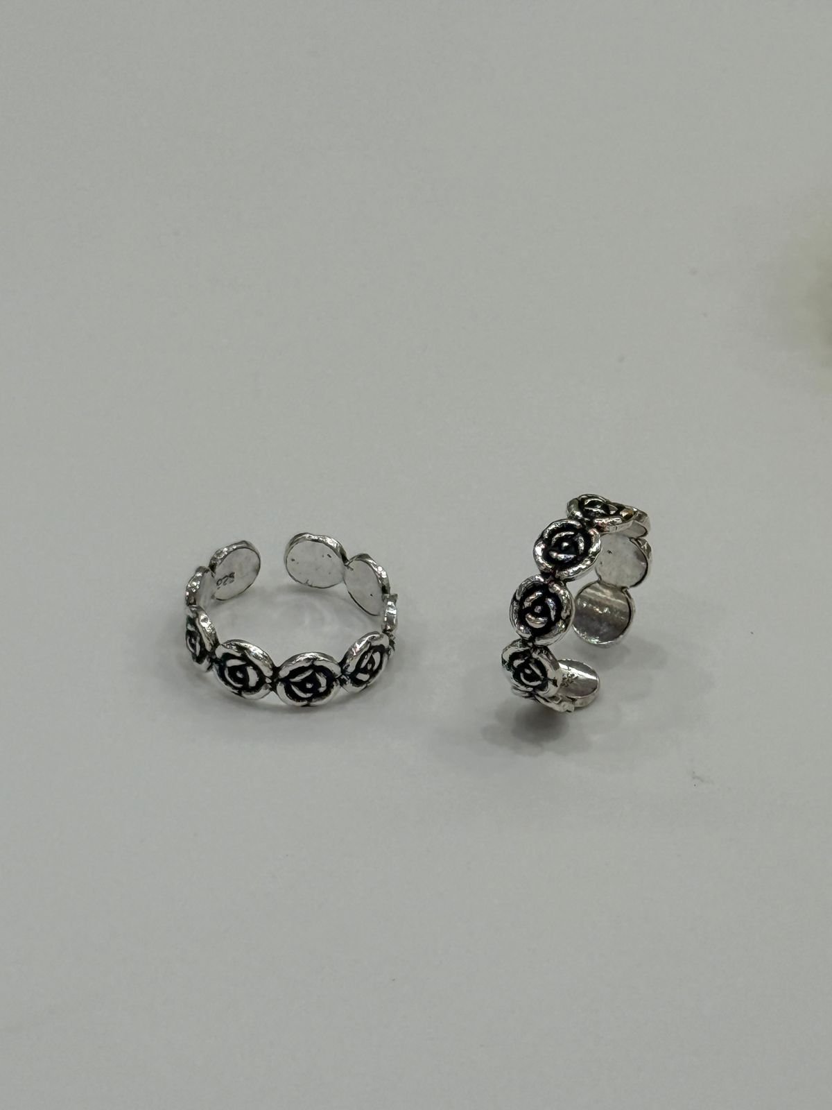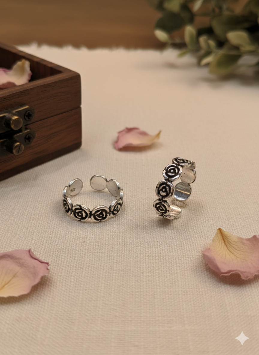92.5 Silver Eternity Rose Flower Stackable Antique Toe Ring