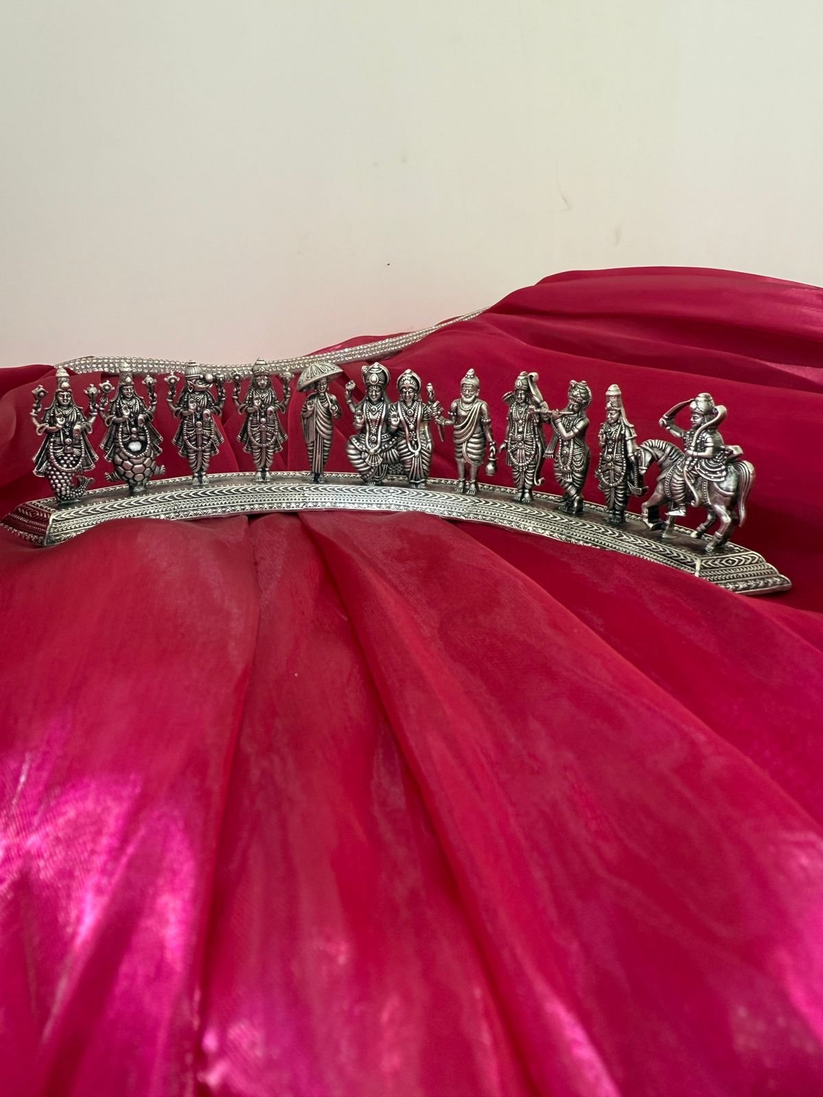 Celebrate the cosmic essence of Lord Vishnu with this exquisite antique silver Dashavatar idol, beautifully capturing all ten incarnations in a single majestic stage. A timeless symbol of protection, balance, and divine energy for your sacred space.