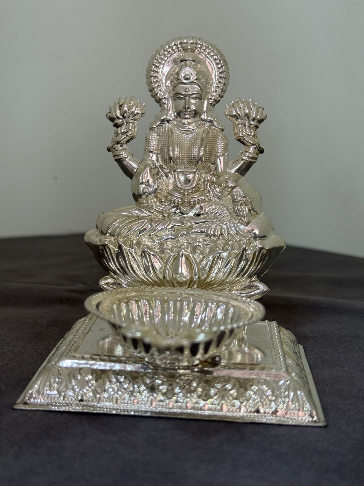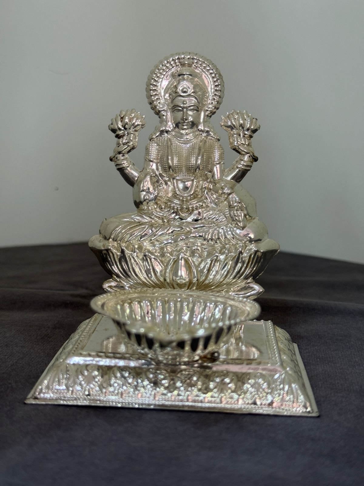 This finely crafted Lakshmi idol invites wealth, abundance, and positive energy into your home. A sacred piece for pooja spaces, symbolizing divine blessings and auspicious beginnings.
