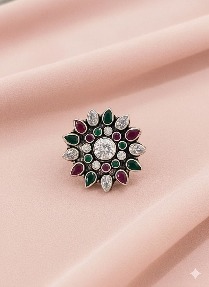 Premium 92.5 Silver Kundan Motif Adjustable Women’s Ring