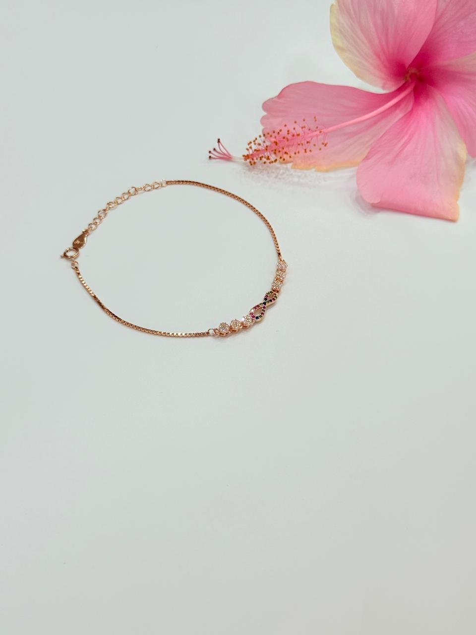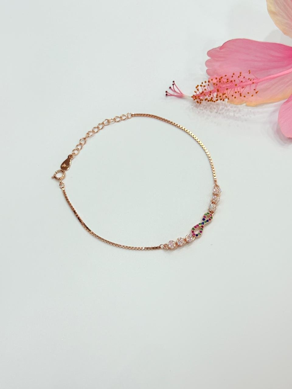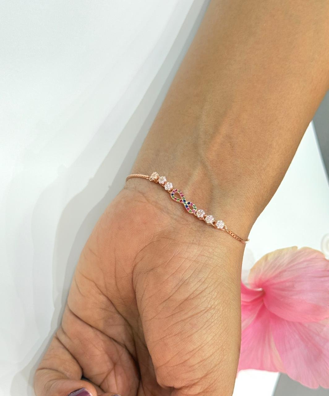 A vibrant symbol of eternity, this bracelet rose gold elegance with multicolor stones, celebrating love, joy, and endless possibilities