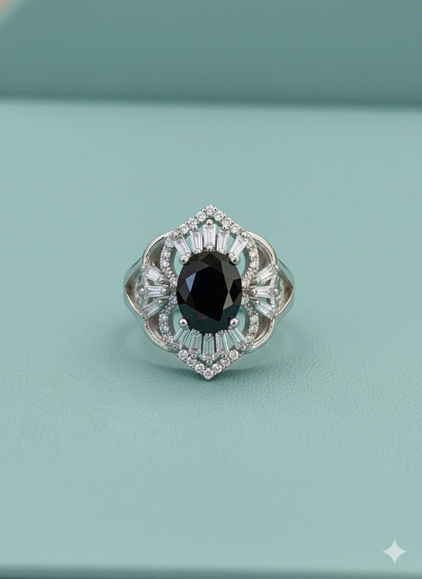 Premium 92.5 Silver Black Stone Women’s Ring