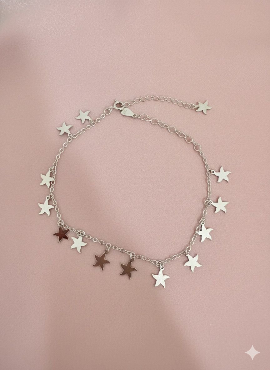 92.5 Silver Elegant Star Fish Charms Bracelet