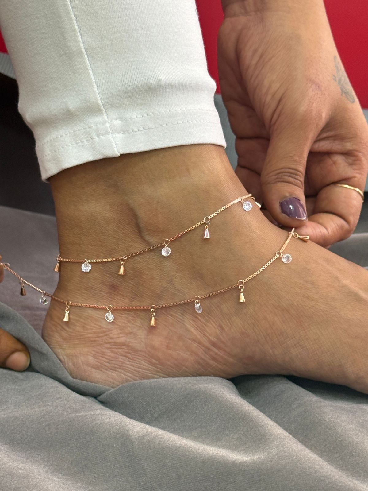 The sleek cone design accented with shimmering stones reflects strength and elegance in perfect harmony. A contemporary anklet crafted to stand out with subtle brilliance.