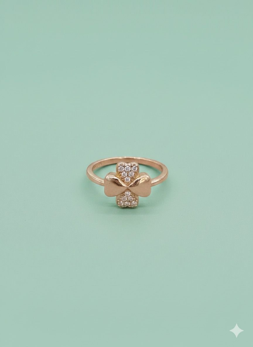 92.5 Silver Rose Gold Lucky Charm Clover Ring