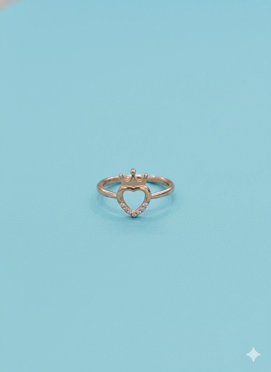 92.5 Silver Rose Gold Heart  Crown Ring